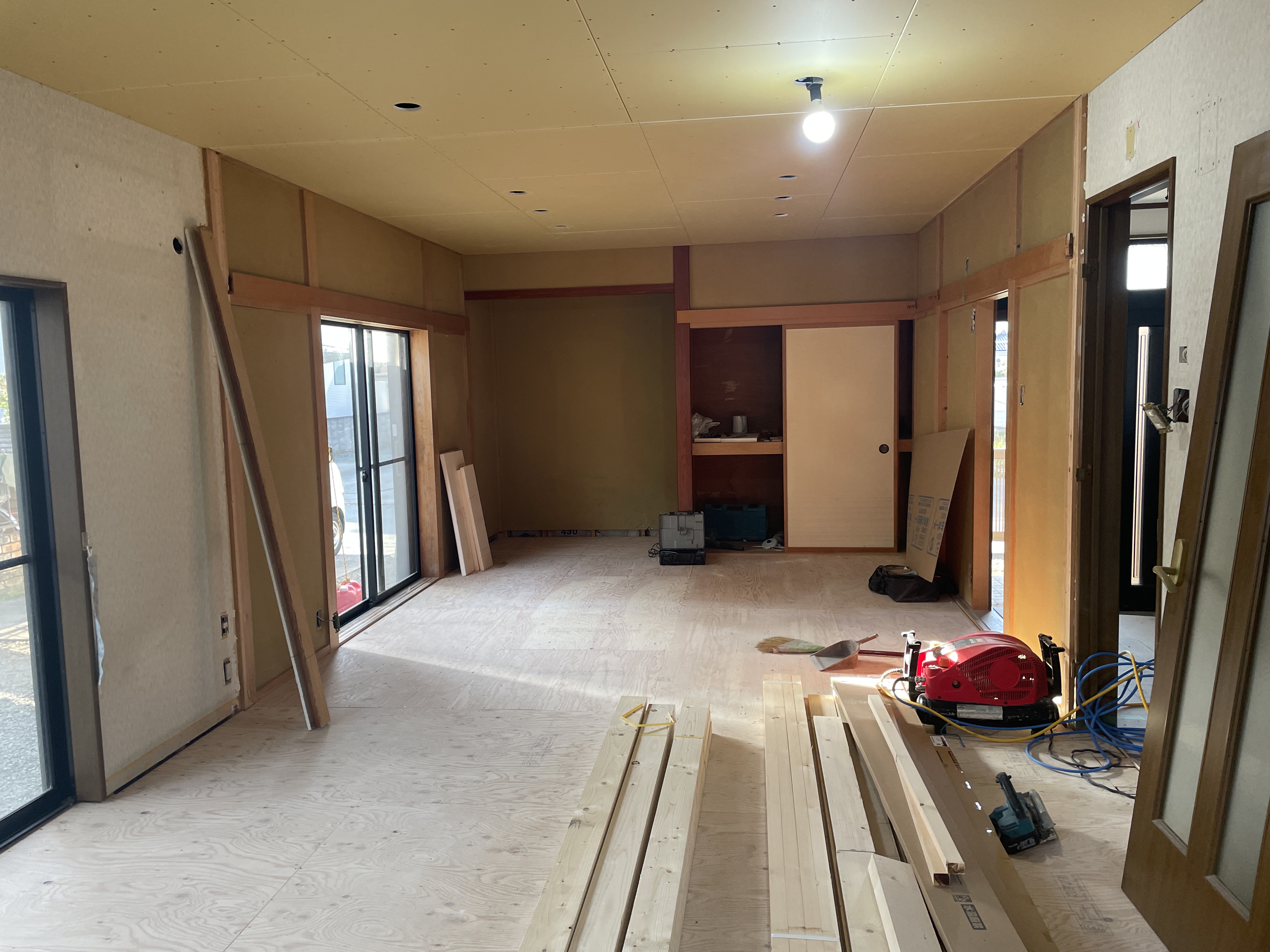 一宮中古住宅改修工事現場状況 1階和室とDKをつなげ、広いLDKにしました。 …