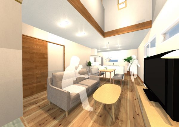 実際に弊社のスタッフの玄関から開けたLDKが開放的なことと子供たちの声が2階から聞こえることに安心感を感じているようです。