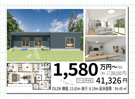 3SLDK|横幅13.65m|奥行:8.19m|延床面積94.40㎡