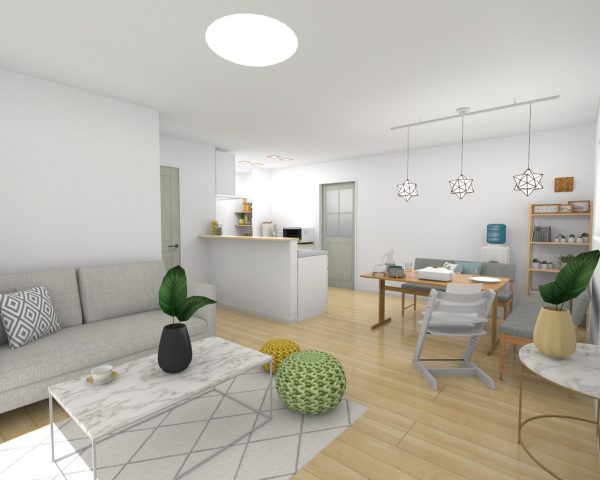 L型のLDKになるので各部屋を自然に区切ることができリラックスできます。